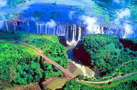На границе между Зимбабве и Замбией река Замбези низвергается тремя водопадами с высоты 128 метров. Это - водопад Виктория, одно из величайших природных чудес света. Своим именем водопад обязан Дэвиду Ливингстону, первооткрывателю и первому белому человеку, который увидел его в 1885 году и решил назвать в честь английской королевы Виктории. Туземцы же называют его «Мозе-Ля-Тунья» что означает «Дым, который гремит». Действительно, водяные брызги, поднимающиеся от водопада, образуют облако, издали похожее на дым. Хотя водопад можно увидеть при посещении обеих стран, полный фронтальный вид на него возможен только со стороны Зимбабве. Перелет на водопад осуществляется из Йоханнесбурга до города Виктория Фоллз (Зимбабве) или города Ливингстон (Замбия). Для посещения Зимбабве необходима въездная виза, которая оформляется в Москве. При вылете из Замбии взимается аэропортовый сбор 30 USD. Во время пребывания на Водопаде можно посетить также ряд увлекательных экскурсий: В традиционную африканскую деревню (в Зимбабве и Замбии) Вечерний круиз по реке Замбези и шоу африканских танцев Полет над водопадом на вертолете или 2-х местном самолете Сафари верхом на лошадях Сафари на слоне (в Зимбабве) Сафари по реке Замбези – сафари на воде Сафари на каноэ