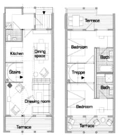 7 рорбу с 2-мя спальнями на 4 человека (136 м2) 2 спальни с двумя кроватями и туалетом/душем в каждой